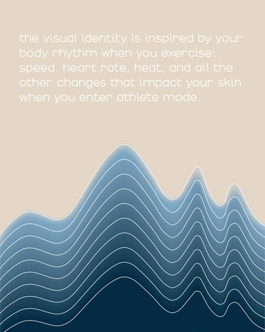 L’identité visuelle de la marque s’inspire directement du rythme du corps en activité : vitesse, fréquence cardiaque, chaleur et tous les changements physiologiques qui impactent la peau pendant l’entraînement.